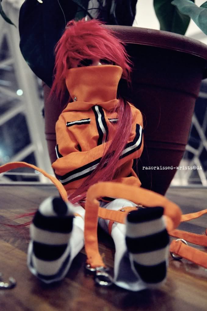 ![]() Doll of the day :D (Cause he's the new doll and... he is a twin to another doll! It was a pretty eventful day yesterday. It was a slow day, me just doing the stuff needed for the FOC tees. So happened it was Cedric's last day of exams. Since I needed to head out to get some materials, I had lunch with him. Thinking about it now, Cedric is the kind of childhood guy friend a girl would grow up with - a good childhood guy friend whom you can talk, spar, joke, fight with without breaking ties... and still be really good friends after a huge fight most people would deem the end of the friendship. Hahaha. We had a good time talking lots of crap in our lives at the moment and wasted more time chilling. I went back after and got ready for a test photoshoot with Alex. :) We were mostly testing locations and angles. Plus he had a new doll for me to work with, so I had to get familiar with him :) ![]() ![]() Suave * w * Paradiso is Alex's company. They're making clothes for these pretty dollies :D And yeah, he's selling that bomber vest. More coming up in the next real shoots ;D ![]() ![]() THERE! These two are twins. They're made of the same sculpt, just different skin colour, eyes, wig, clothes. They're AOD Cloud custom. ![]() A few test shots and... ![]() * w * ![]() It was pretty hard to work with the new guy 'cause he's still new - fresh strings, fresh everything~ It started to get dark so we went to the previous haunt. Familiar surroundings and I swear it ain't that good, really. ![]() I abandoned this poor girl :( Frankly, I like the guy dolls more... Heh. Alex also had an MSD, one of his customer's. She's super cute! Looks like a guy but is a girl sadly :( She's an AOD An. She's called Aoi :) ![]() Play with me? ![]() She's so cute in her orange straitjacket~ Plus her hair was just like mine :D So awesome, I love her. All of Alex's dolls don't really have a name sadly. Fhl hahaha. So anyway, the doll of the day was like... dying at one corner xD ![]() ![]() Took a few more shots with Aoi and Alex's smallest doll xD ![]() And my Hello Kitty heh, so cute! Aoi's like guarding my HK. ![]() Then we wrapped up and went home. I need to find more places where I can do shoots... and remember to bring my tripod along. Heh. Labels: Dollfie, Photoshoot |