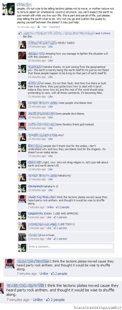 ![]() This is what WIN is made of. I've been pretty well occupied this week! :D There was a picnic on Wednesday and just today, there was a pre-FOP outing to ECP. 我喜欢。 Okay, not really, but I had fun so, 我喜欢。 Since we were going to the Barrage, I knew we'd reach there about 4 so we didn't meet too early. I wore my low cuts and it nearly rained. :( There's something about my low cuts that plays with the weather... FOREVER. It's so well worn that there are holes on the soles, so I try to avoid wearing it when it's gonna rain (else the water will seep in), but whenever I wear them, it either nearly rains, or simply rains. Honestly, I've taken notice ('cause it's dying and I don't want to dump them! Ugh). Anyway, I was the first to meet the fresh meat. It felt like bringing 3 little kids out for a walk. xD So glad I'm not the oldest (by counting the years). Oh, I only had my 50mm lens with me that day so all I took, mainly, was pictures of people - oh the glorious bokeh. ![]() ![]() Gabriel was a nice basket. :) ![]() SEE, THY GLORIOUS BOKEH AND SHARPNESS ![]() Victoria was like holding everything in sight. She cute ah. ![]() Then there was this fake coconut drink. Literal plastic coconut. Idgi. ![]() One artistic shot for the lulz. Later, Cuixia arrived. I wore my plaid jeans 'cause it was the only thing that matched the shirt we planned to wear together! Aha, I seriously didn't look like I was going for a picnic! (I kinda looked more like I was going for a concert.) ![]() Then we got moving! :D ![]() ![]() LIKE A BOSS. It was so hot :( Lucky it was about 4+ when we reached, so the sun wasn't at its peak anymore. ![]() The guys didn't want to cooperate :( And we settled down! Woohoo! ![]() ![]() ![]() ![]() We didn't stay out on the roof for long 'cause the grey skies decided to spoil our fun :( Oh, the guys managed to get their kites up for a while before the strings got tangled and the lightning risk alert. (There was this bunch of youngsters who were super excited about flying a kite. And their kites were in the classic shape - diamond. They were shouting, "I'm flying! I'm flying!" all the way through...) ![]() I got this shot before the clouds came over to rain on our fun. It was just like those surreal moments where it looks like heaven is showing itself... I editted this heavily 'cause I just couldn't get the right exposure. As long as you can see that light thingy, you got it B) We hid in the cafe at the 2nd floor for a while and wasted some money. Then we left, thinking it was better, but it wasn't! The risk alert was still there so we had an indoor picnic. ![]() ![]() ![]() We didn't stay too long, 'cause we're good kids. We parted where we met and will meet again before school starts! :D Today, I overslept. Gabriel nicely went back to sleep when he found I wasn't awake. Hahahaha so we reached ECP 3 hours late! (Y) CL was with his friends, so his friends and him rented bikes together with us. So the outing kind of split into two xD I totally spammed CL's camera with my face :p ![]() FLOWER HAHA ![]() The wind was so good xD ![]() We look like we're modeling for contact lenses here, hahaha ![]() CL wanted to make me look short here. ![]() Gabriel and his pervy face~ Inner ego Angel appears! ![]() ![]() ![]() ![]() ![]() ![]() ![]() ![]() ![]() ![]() I had fun today. :) Aaaaaaaaaaand... my new deepee! :D ![]() |