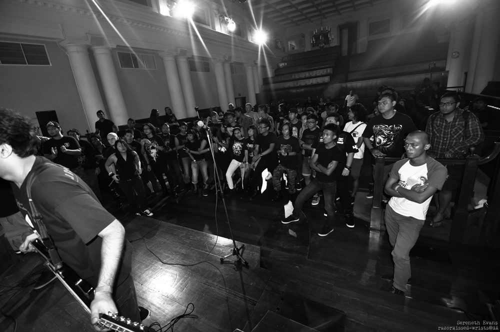 ![]() A Bitter Affection on FaceBook, MySpace, ReverbNation Left to right: Kelvin (Bass), Marcus (Drums), Lay (Vocals), Matt (Guitars), Ian (Guitars) Hello. I went for Grindhouse II last night as a photographer! Though it's not 'a good show' (as Ian and Hakim said, and both said they'll bring me to a better show next time), it's still pretty interesting. I'm also quite surprised I walked out in one piece, not too deaf despite standing right next to the speakers (I could feel the bass and the vibrations, woah). Yes, it's my first time photographing at a show so I was pretty self-conscious and all... I'll do better next time. u__u So, I actually went to rent a 10-24mm lens for the show - the distortion was really hard to manage. :( I think I have only a handful of good shots; I just need to get some software from Hakim and work on the new program... Maybe things won't look as bad. ![]() One of my test shots. (Does it look like you can reach for one of the fries in the picture?) I'm still learning :'D Don't think I'll get to use it much 'cause I won't be getting this lens any time soon :'D Anyway, I can't put up any of the pictures until I send them to the band. But I'll just put a teaser up. Hehe! ![]() ![]() Oh yes, I finally made a Flickr account! I'm not at home now so I guess I'll only be able to build it up tomorrow! And Happy Easter, all of you! :{D Labels: A Bitter Affection, Band, Shows |