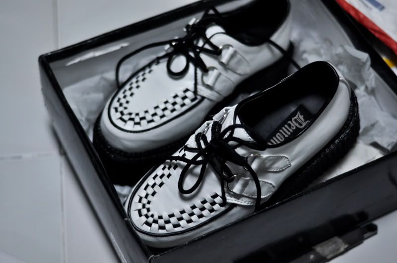 ![]() Guess who came by the place and made my day with my stuff from US! The best part about shopping online is when the items finally reach you. :) Because you get to unwrap it! Anyway, I finally got around to getting these babies after procrastinating for a really long time. But I think it isn't all too bad - I have more clothes, better clothes to match with these. Hehe. ![]() (screams) I've had a bit of a hard time deciding between this and T.U.K. but eventually got these because... Because of... ![]() The coffin compartment. I don't really know what I'd put in them, or ever, but I thought it was cool. Next time I'll try out other brands. I think I'm gonna wear these out tomorrow, I can't wait! It goes sooo well with my plaid, and checkered jeans! In other news, happy v-day. It's fruity day in NAFA and you can haz a giraffe I did for one of my recent modules! ![]() Labels: ▼ |